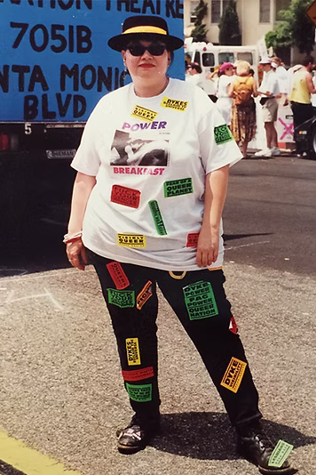 Judy Ornelas Sisneros was a member of ACT UP Los Angeles from mid-May 1990 to January 1995. She was a member of the Women’s Caucus, joining during the first meeting on June 3, 1990. In spring of 1991 she co-facilitated the Agitating & Legal Committee whose major action was the AIDSphobia in Hollywood campaign. From 1991 through 1993 she was one of three ACT UP Los Angeles representatives to the national umbrella ACT UP Network. During her participation in ACT UP LA she traveled to multiple cities for actions and meetings: Atlanta, San Francisco, Washington D.C., Dallas, St. Louis, Sacramento and Philadelphia. She was arrested six times in civil disobedience actions in three different states and in D.C. Sisneros was part the National ACT UP Women’s Caucus that co-organized the National Dyke March on the eve of the 1993 National LGBT March on Washington. This march kickstarted a wave of dyke marches throughout the U.S. that continues to this day. In 2000 she curated an exhibit of ACT UP LA graphics and photos called Loud, Proud and Pissed at the Highways Gallery2 in Santa Monica. Much later, in 2017 she co-curated the exhibit Lesbians to Watch Out For: ‘90s Queer LA Activism at Plummer Park in West Hollywood.