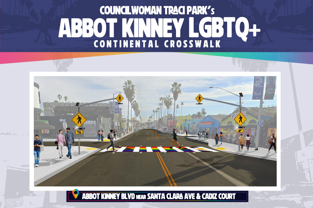 Councilwoman Traci Park invites you to join our office, our City department colleagues, and community leaders and partners for the Re-Dedication Ceremony for the Abbot Kinney LGBTQ+ Continental Crosswalk. This crosswalk project will enhance pedestrian safety and visibility through the addition of the new access ramps and a crossing signal.