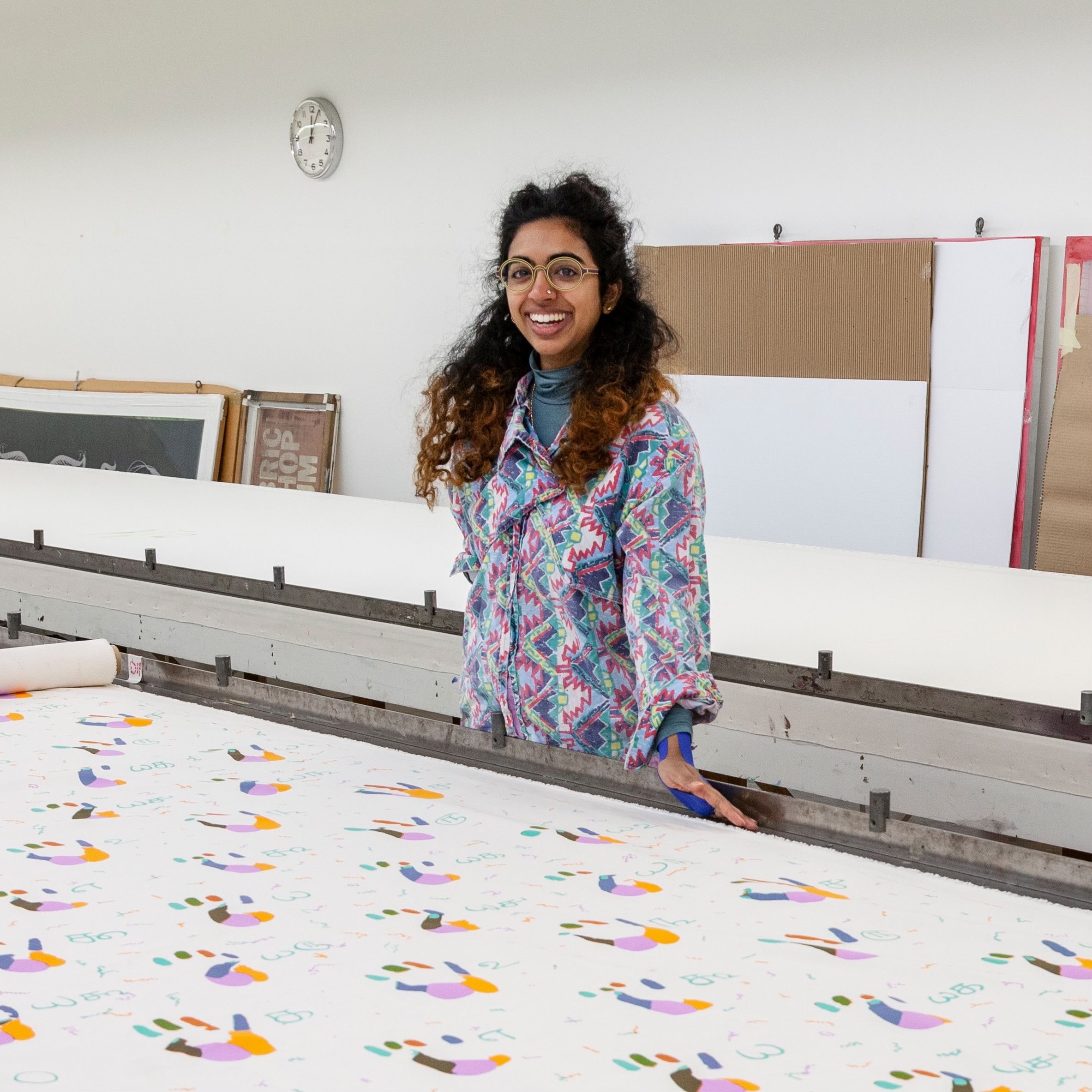 Bhavani Srinivas (they/she) makes sculptures, fiber installations, prints, and books. These objects often explore the myths of the motherland that are imagined by people living in diaspora; scientific racism; and material history.
